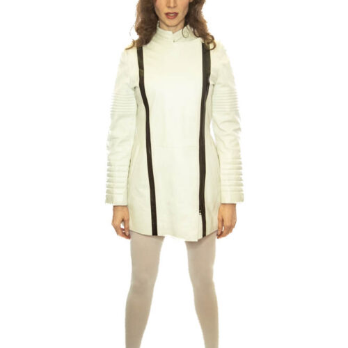 Damen Lederjacke (3/4 lang) – weiß