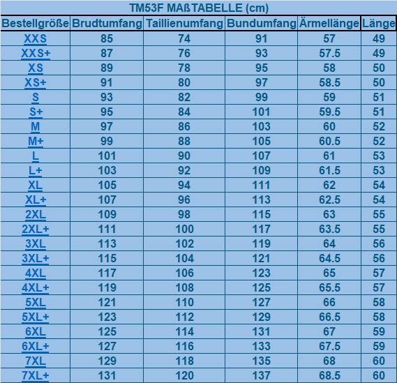 XXS, XXS+, XS, XS+, S, S+, M, M+, L, L+, XL, XL+, 2XL, 2XL+, 3XL, 3XL+, 4XL, 4XL+, 5XL, 5XL+, 6XL, 6XL+, 7XL, 7XL+